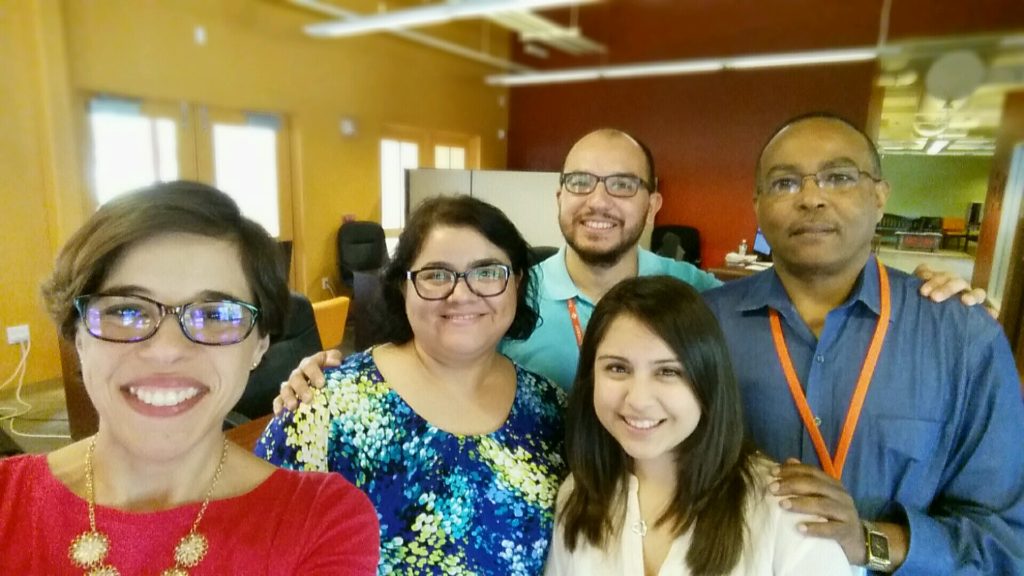 From left to right: Cristina Cave, Maria de la Cruz, Celina de la Cruz, Jonathan Bisso, and Bereket Saare
