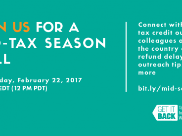 Connect with your tax credit outreach colleagues across the country on Wednesday, February 22, 2017 at 3:00 PM EDT (2 PM CDT/ 1 PM...