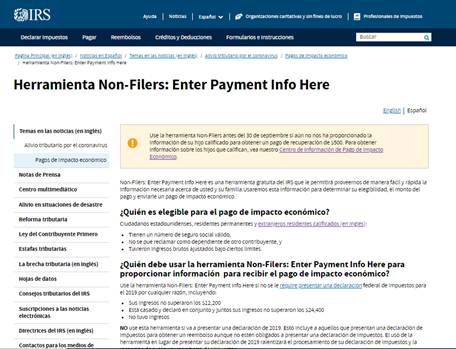 ***View the English guide for the IRS Non-Filer tool here.***