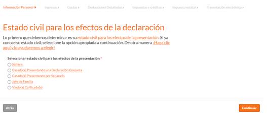 Paso 3: Reporta tu estado civil actual.