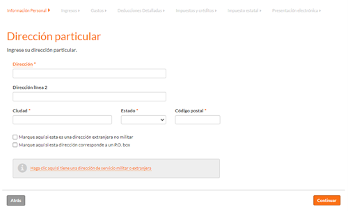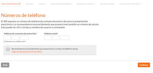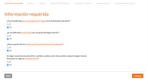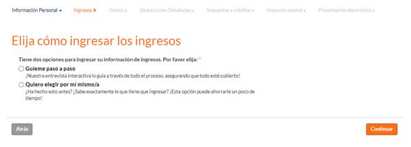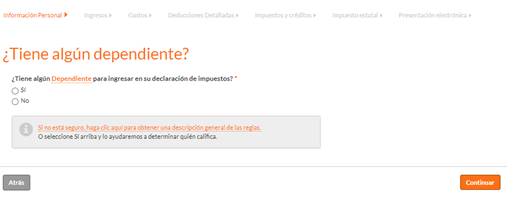 Aquí vas a compartir si tienes dependiente(s). Si tienes dudas, haz clic en el recuadro gris, sobre la frase “Si no está seguro…” para conocer las reglas del IRS para calificar dependientes. Al terminar de contestar la pregunta haz clic en “Continuar”.