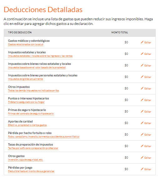 Paso 13: Deducciones detalladas.