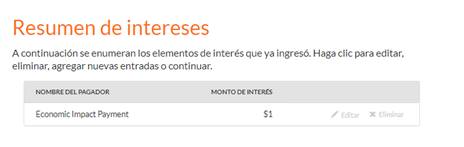 Paso 15: Información para Pago de Impacto Económico.