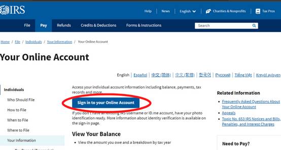 Step 1: Visit the IRS website to access the “Your Online Account” Page