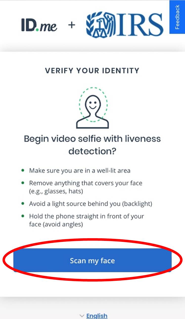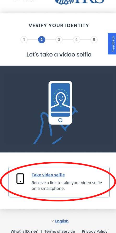 You will need to verify your identity by using your phone camera to scan your face during a short video. Click the “Take video selfie” button to get started.