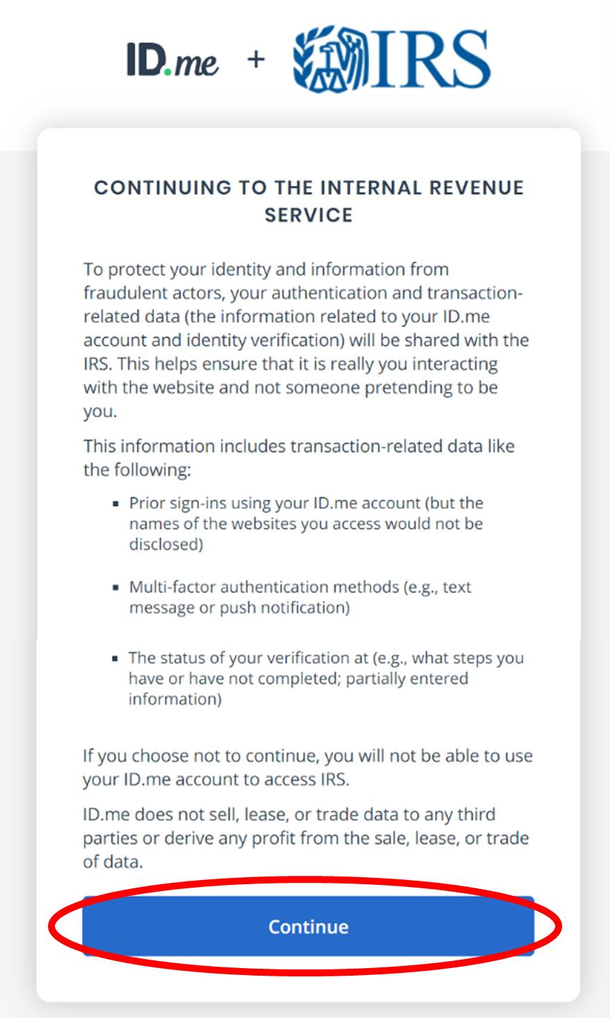 Step 11: Allow ID.me to share your verified identity information with the IRS