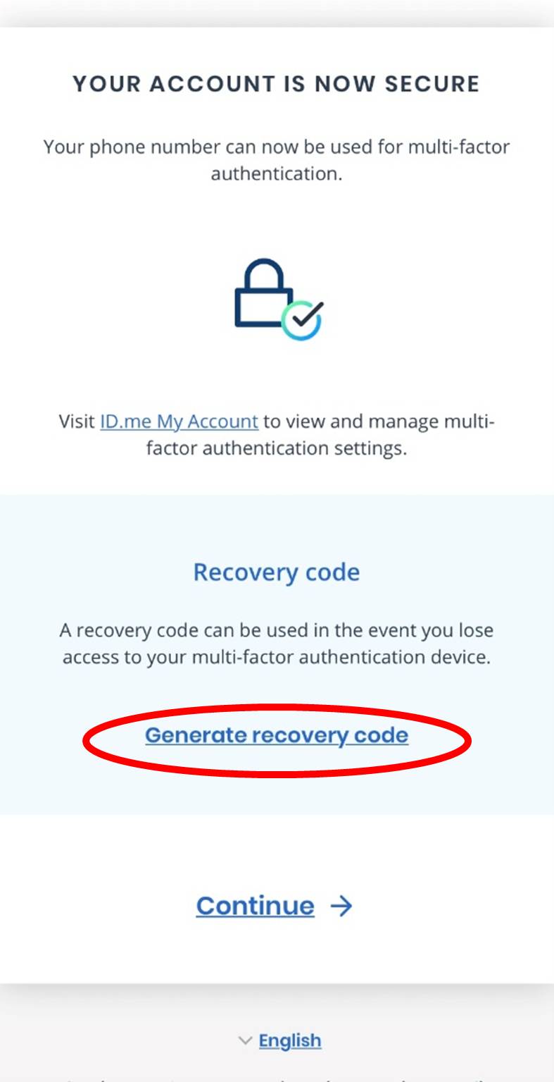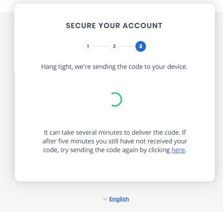 Enter the code in your text message onto the computer screen. Then press the blue “Continue” button. Your account is now secure!