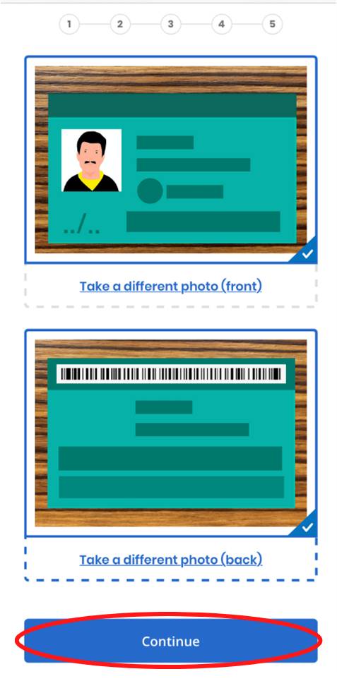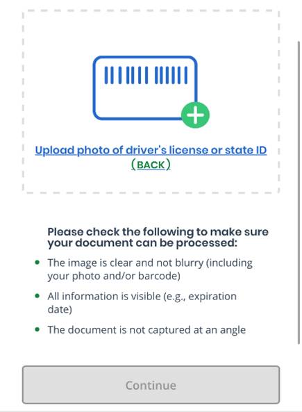 Repeat the same steps to take a photo of the back of your driver’s license or state ID. After you have taken a photo of both the front and back side, both boxes should show photos of your driver’s license or state ID.