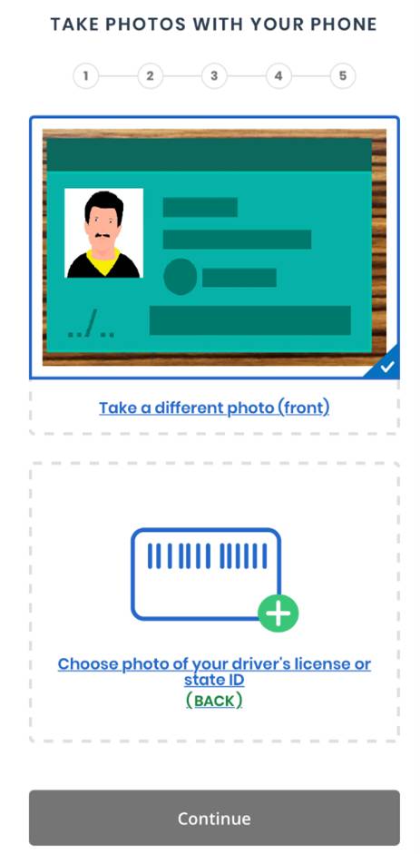 This guide uses the option to upload photos of your license or state ID.
