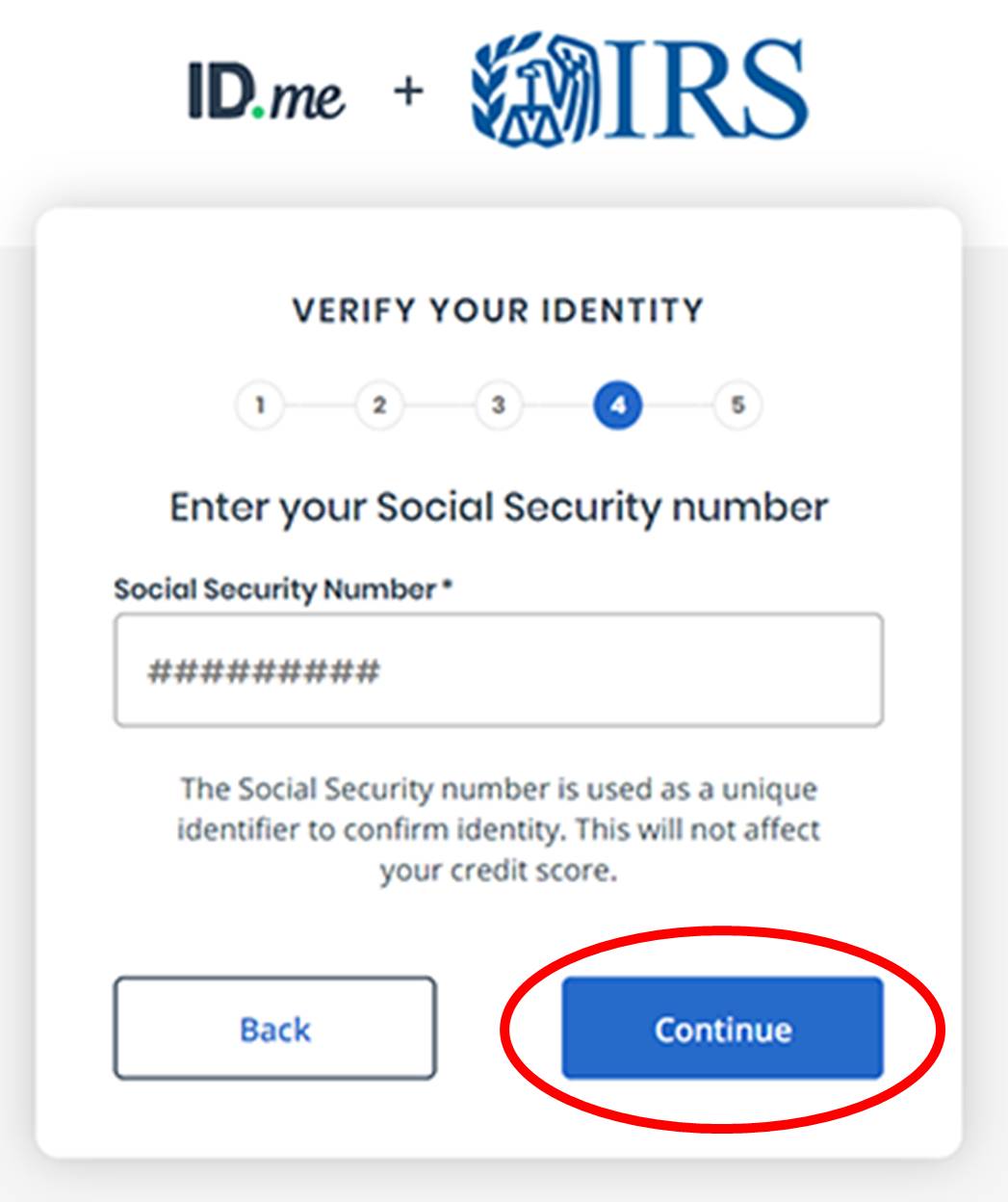 Click the blue “Continue” button once you have entered your SSN.