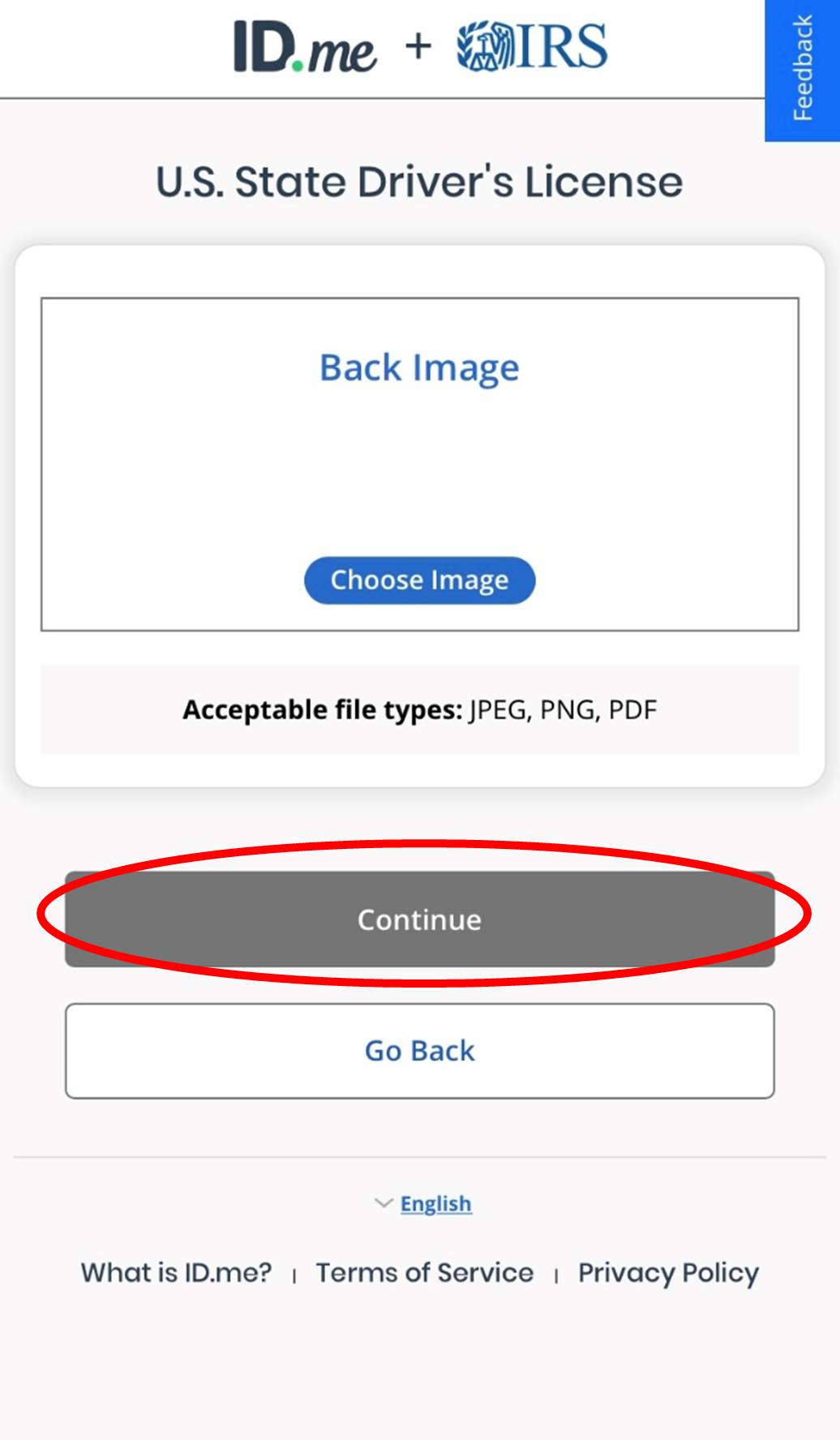 You will be taken back to the previous page to upload the photo of the BACK of your driver’s license. Repeat the step above again.